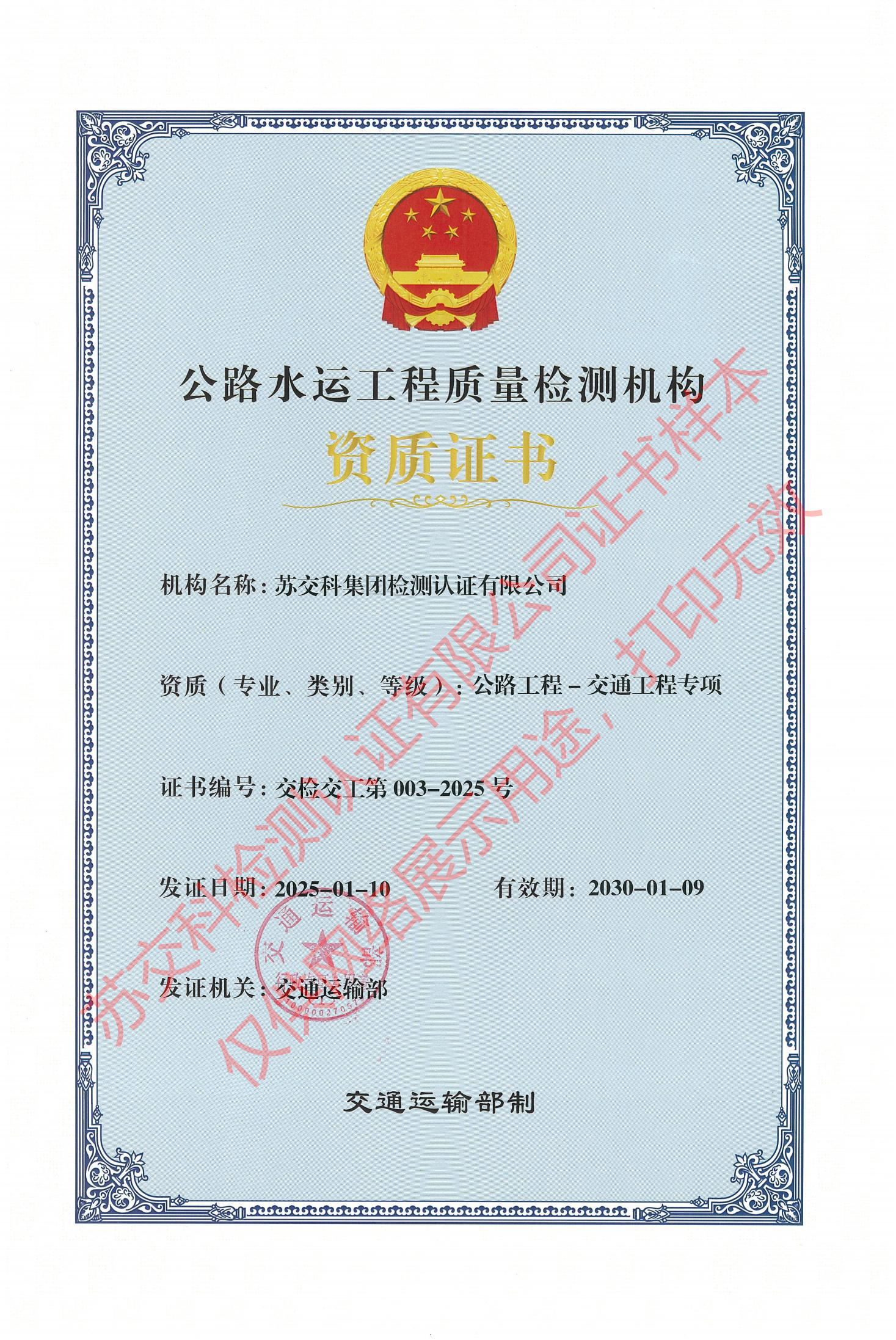 蘇交科檢測(cè)認(rèn)證交通工程專項(xiàng)